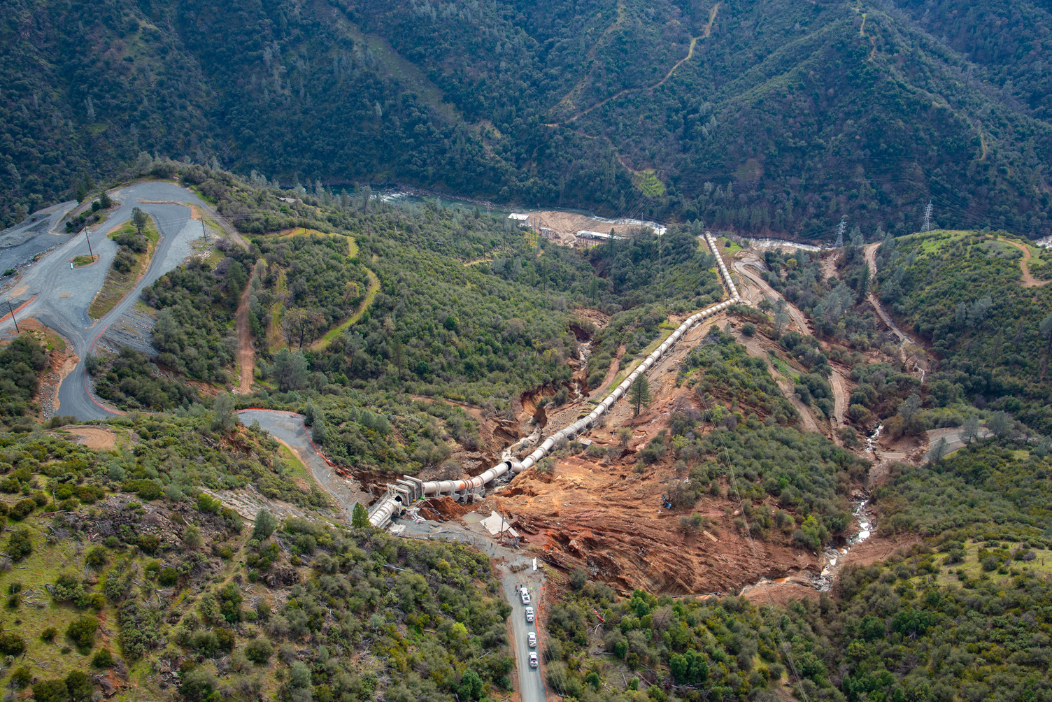 Public access to lower Lake Francis Road is closed at this time. Portions of the road were washed out during the incident, and there are ongoing concerns about erosion and soil stability along the entire hillside. The area around the penstock and New Colgate Powerhouse remains unsafe and is not open to the public. Additionally, it is currently unsafe to access the Yuba River between the New Colgate Powerhouse and Englebright Lake.