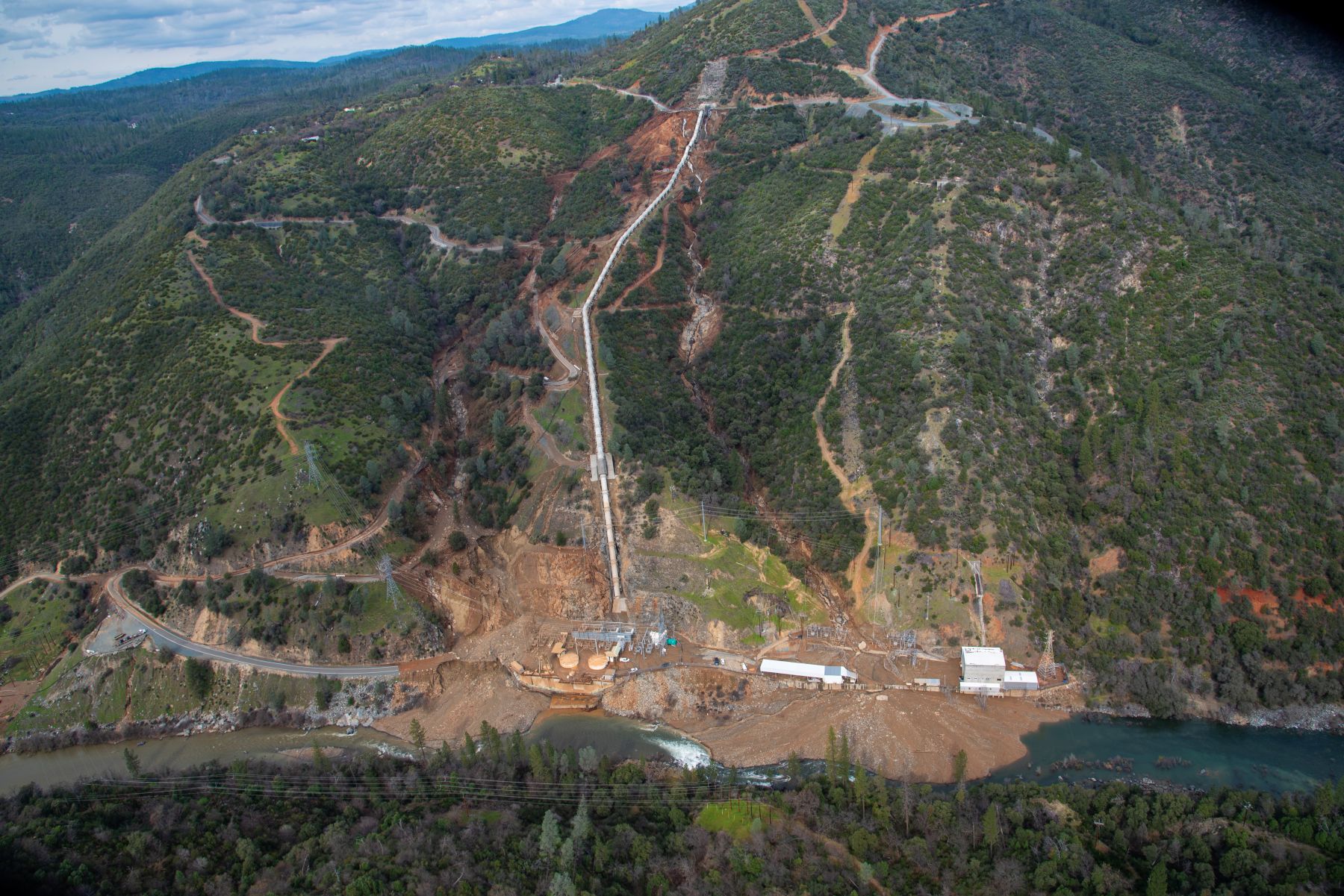 The penstock pipe and New Colgate Powerhouse are located in the foothills of Yuba County in the community of Dobbins along Lake Francis Road on the North Yuba River. It’s approximately 45 minutes east of the city of Marysville. Public access to lower Lake Francis Road is closed at this time. Portions of the road were washed out during the incident, and there are ongoing concerns about erosion and soil stability along the entire hillside. The area around the penstock and New Colgate Powerhouse remains unsafe and is not open to the public.